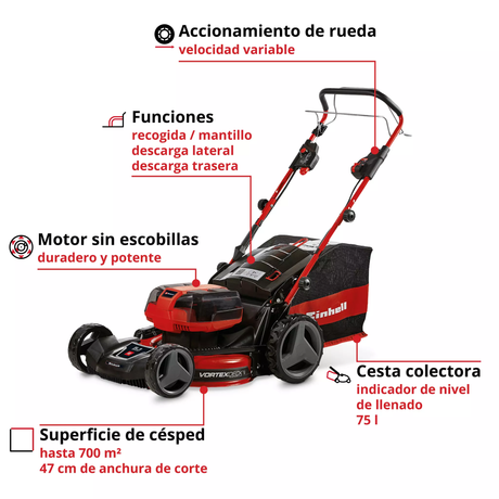 Cortacésped Inalám Profesional 75L 700m2 Einhell GP-CM 36/47 S HW Li