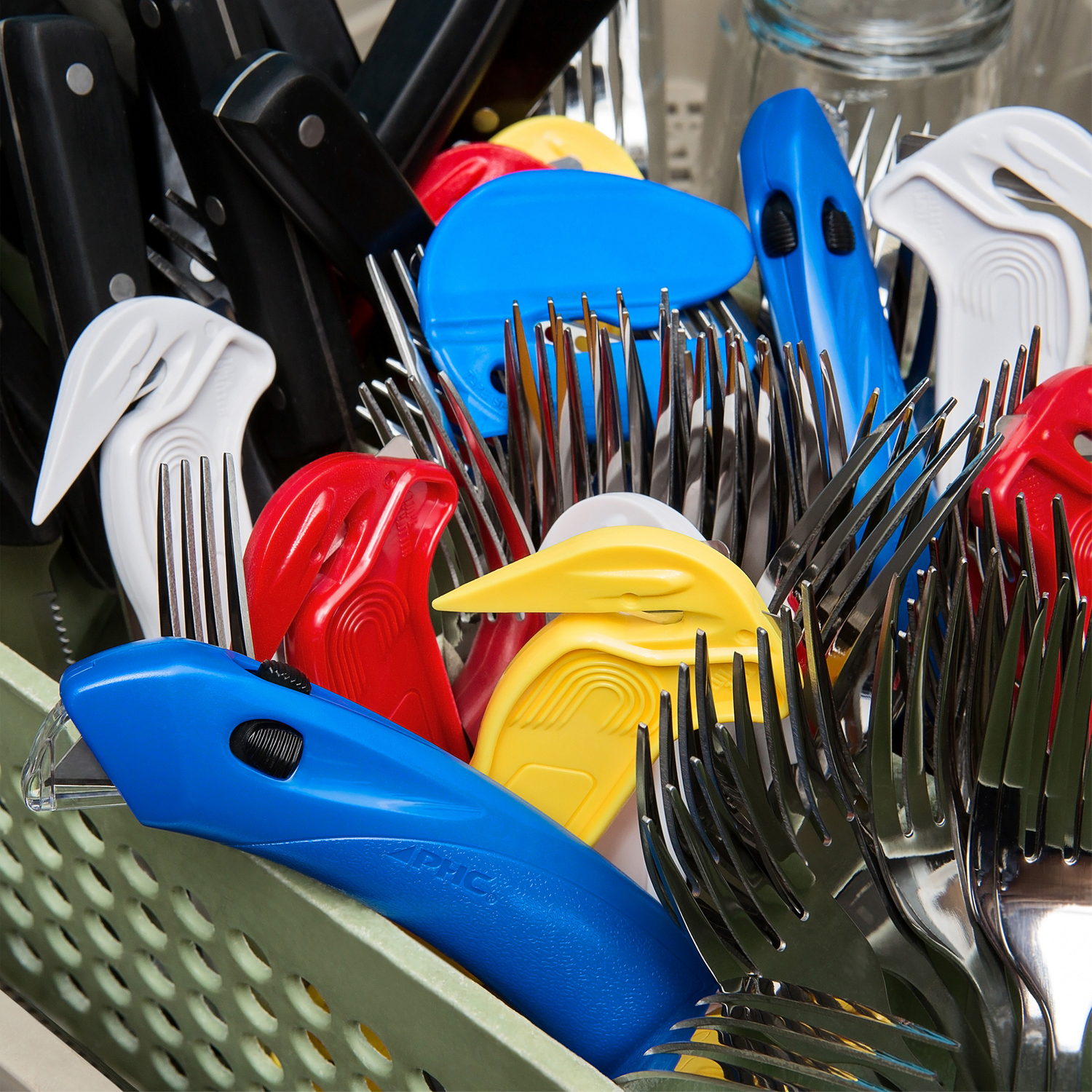 El Cutter DFC-364NSF (Food Safe Cutter) es una herramienta de seguridad ideal para la industria alimentaria y plantas de fabricación. Cuenta con **Certificación NSF**, lo que garantiza su seguridad en áreas de preparación de alimentos. Su diseño cumple con las normas de seguridad **HACCP** y presenta una **hoja de acero inoxidable completamente oculta**, eliminando el riesgo de hojas sueltas en el lugar de trabajo y previniendo costosas lesiones por laceración. Es fácil de limpiar y sanitizar, y está disponible en múltiples colores para prevenir la contaminación cruzada.
