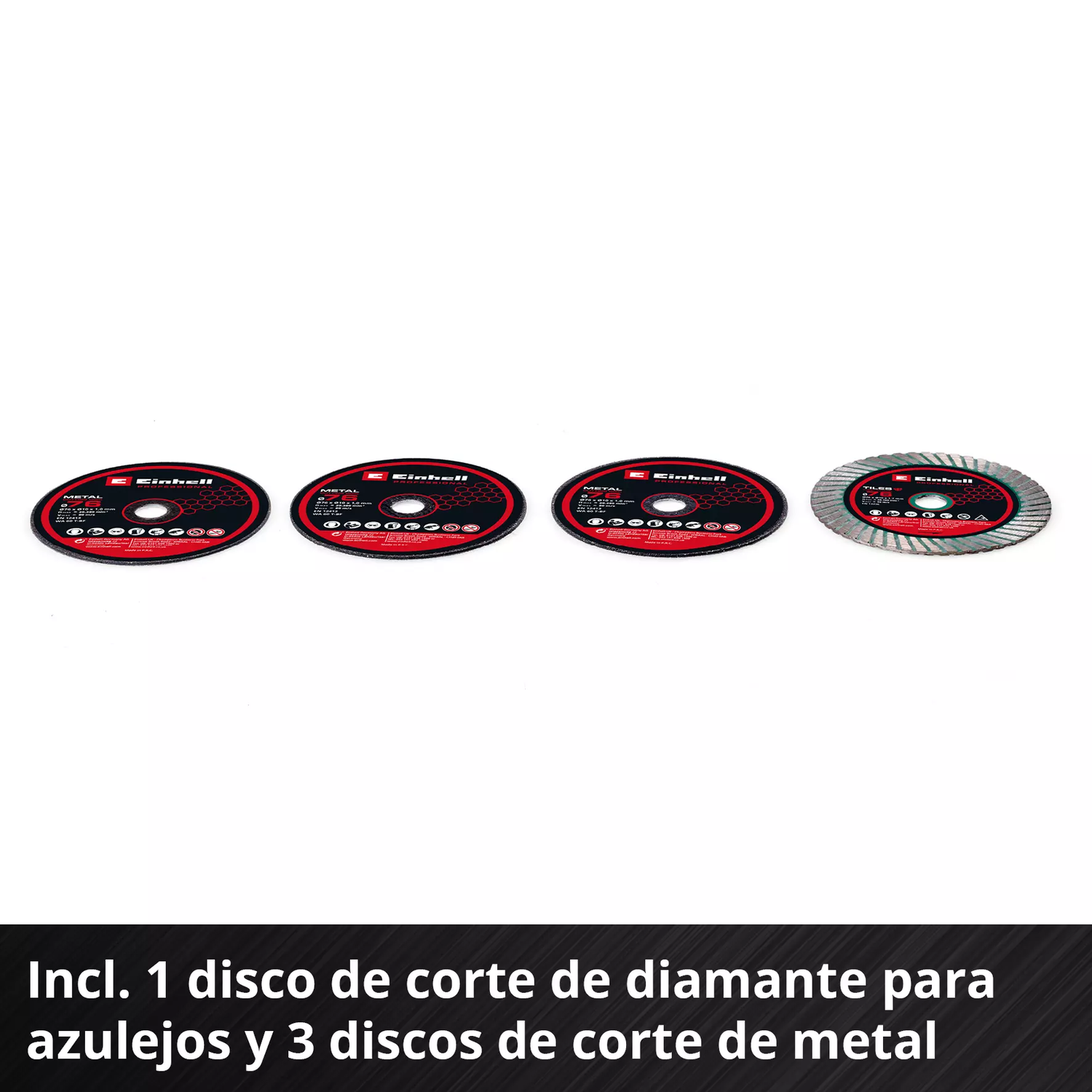 • Incluye 1x disco de corte de diamante para baldosas y 3 discos de corte finos para metal.
