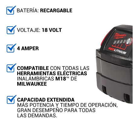 Batería M18 Ion Litio CP 3Ah. High Output Milwaukee 4811-1835