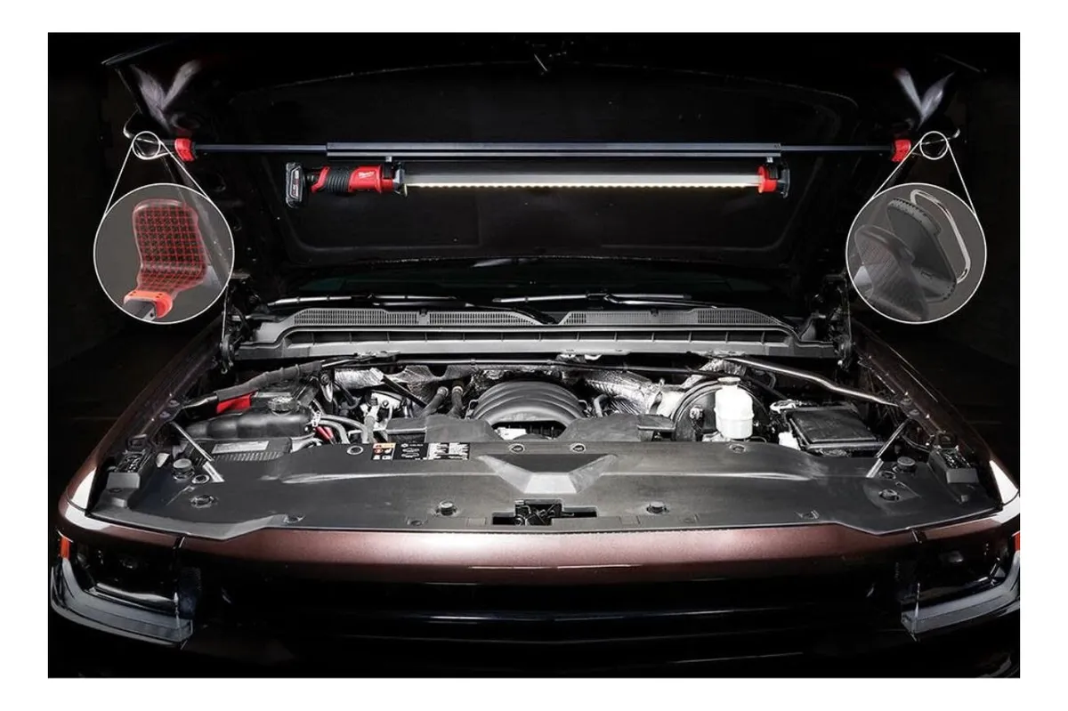 La luz Underhood M12 ™ de Milwaukee ofrece 1350 lúmenes de salida de alta definición TRUEVIEW ™, proporcionando una excelente cobertura y claridad al trabajar en el motor. Su diseño incluye ganchos FINISHGUARD ™ que protegen el acabado del vehículo y cuentan con el doble de superficie de agarre para un mejor posicionamiento. La barra de luces es versátil, permitiendo girar, deslizar, retirar y colgar, adaptándose a diferentes espacios bajo la carrocería y en el tren de rodaje. Además, su transportador se extiende de 47 " a 78 ", cubriendo adecuadamente tanto automóviles como camiones anchos, lo que la hace perfecta para mecánicos en talleres o para el mantenimiento de flotas. Ofrece un funcionamiento de hasta 8 horas con una batería M12 ™ REDLITHIUM ™ 4.0 XC.