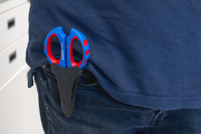 La tijera WEICON XL es una herramienta multifuncional de alto rendimiento diseñada específicamente para profesionales del sector eléctrico e industrial. Su diseño permite realizar tres operaciones esenciales —corte, pelado y crimpado— con una sola herramienta, optimizando el flujo de trabajo en instalaciones y talleres.