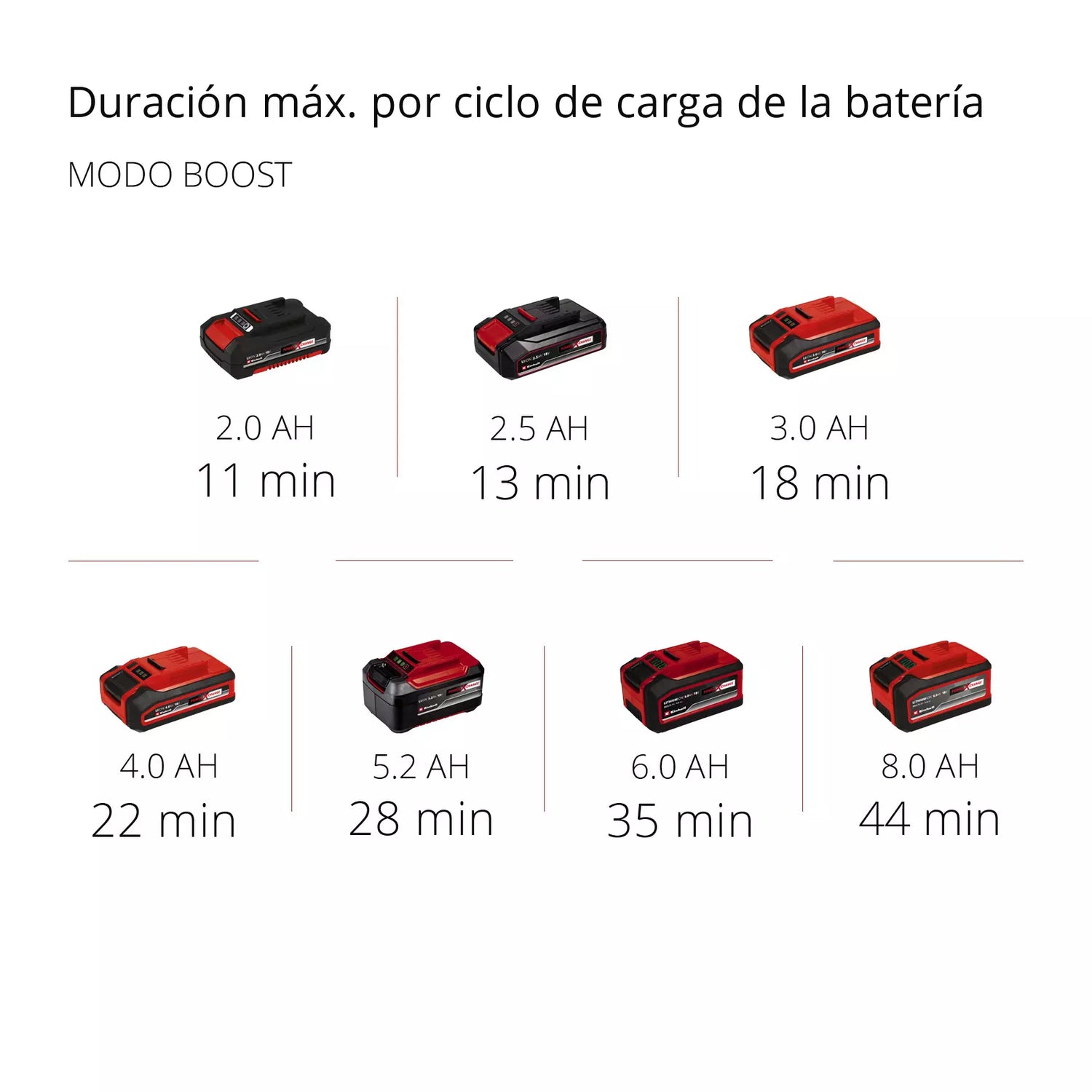 Trae 1 modo ECO para ahorro de energía y mayor potencia, y un modo BOOST para usar más energía y entregar mucho más potencia! Las duraciones estimadas con batería se indican en las imágenes!