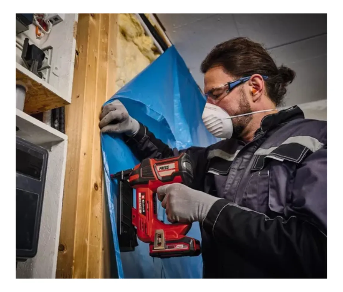 La engrampadora a batería Einhell Professional FIXETTO 18/38 S es una potente ayuda a la hora de renovar y decorar. Ya sea para tapizar muebles, grapar paneles de madera o colocar láminas, lonas o materiales aislantes, con la grapadora a batería puede elegir fácilmente entre disparo simple o en serie según la carga de trabajo mediante el controlador de disparo. Como miembro de la familia Power-X-Change, el FIXETTO 18/38 S se puede combinar con todas las baterías y cargadores de la familia de sistemas.