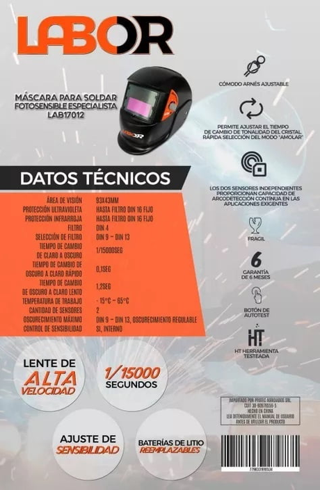 Máscara Soldar Fotosensible Labor +escuadras Magnéticas Guan
