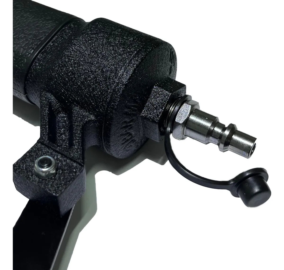 Posee cuerpo de aluminio resistente y liviano, lo que permite un mejor manejo de la clavadora al momento del uso, también tiene grip ergonómico para un mejor agarre.