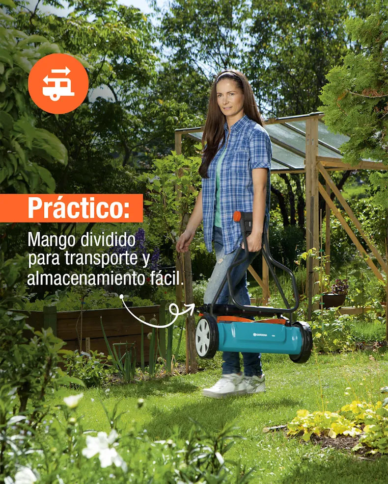 El cortacésped helicoidal 400 Classic de GARDENA es ideal para quienes buscan un corte preciso y silencioso sin necesidad de electricidad. Su diseño ecológico permite un funcionamiento fluido, similar al movimiento de unas tijeras, logrando un césped perfectamente parejo.