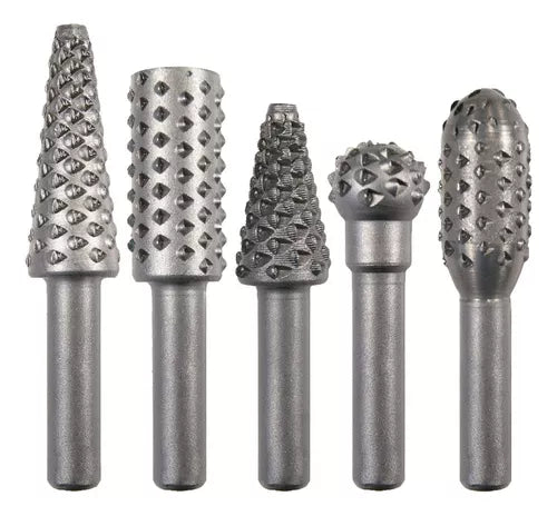 - Incluye 5 tipos de fresas: de bola, ovalada, cilíndrica, cónica y de punta.