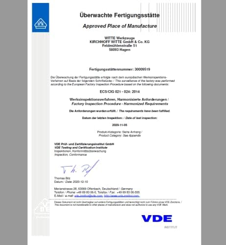 - Marcado permanente con certificación VDE para asegurar calidad y cumplimiento.